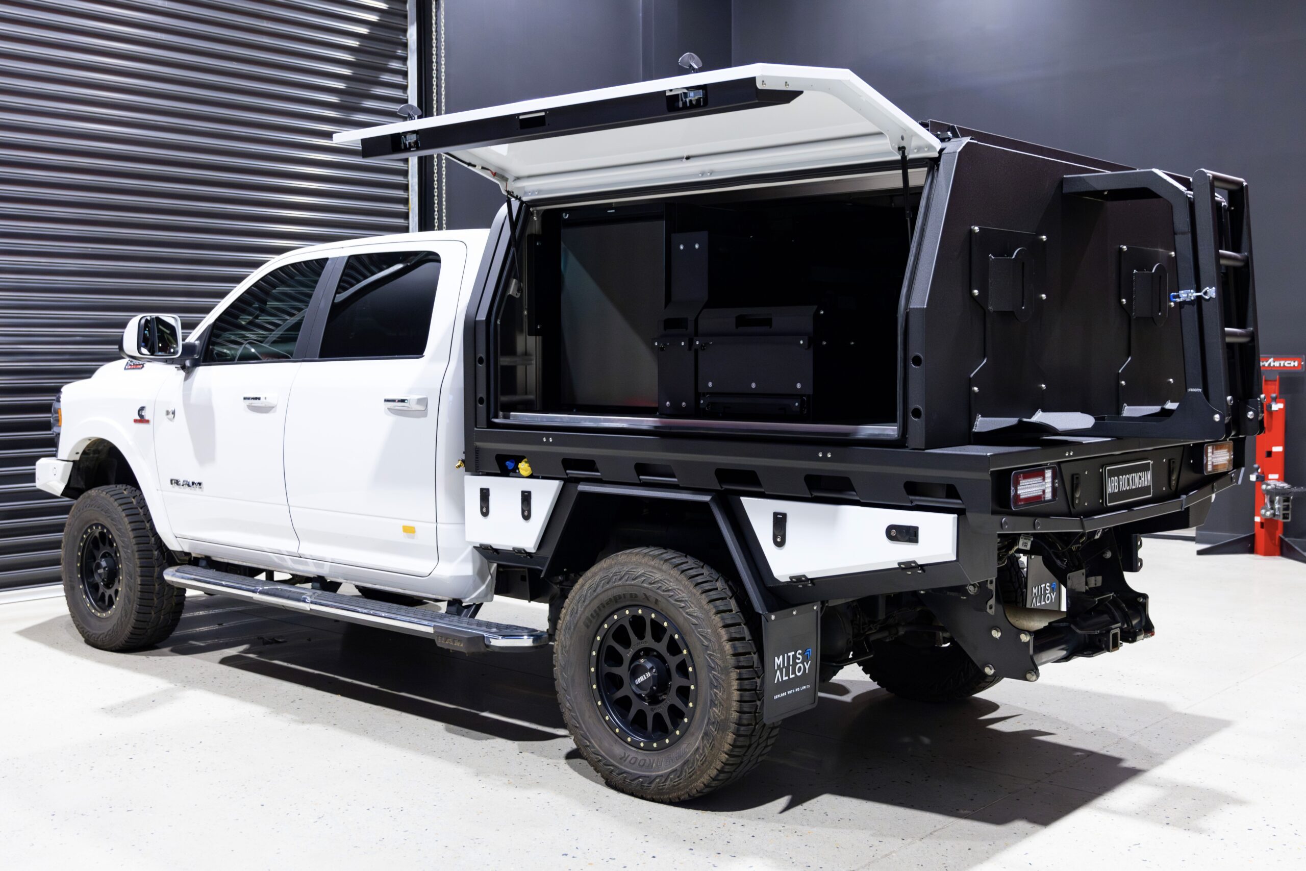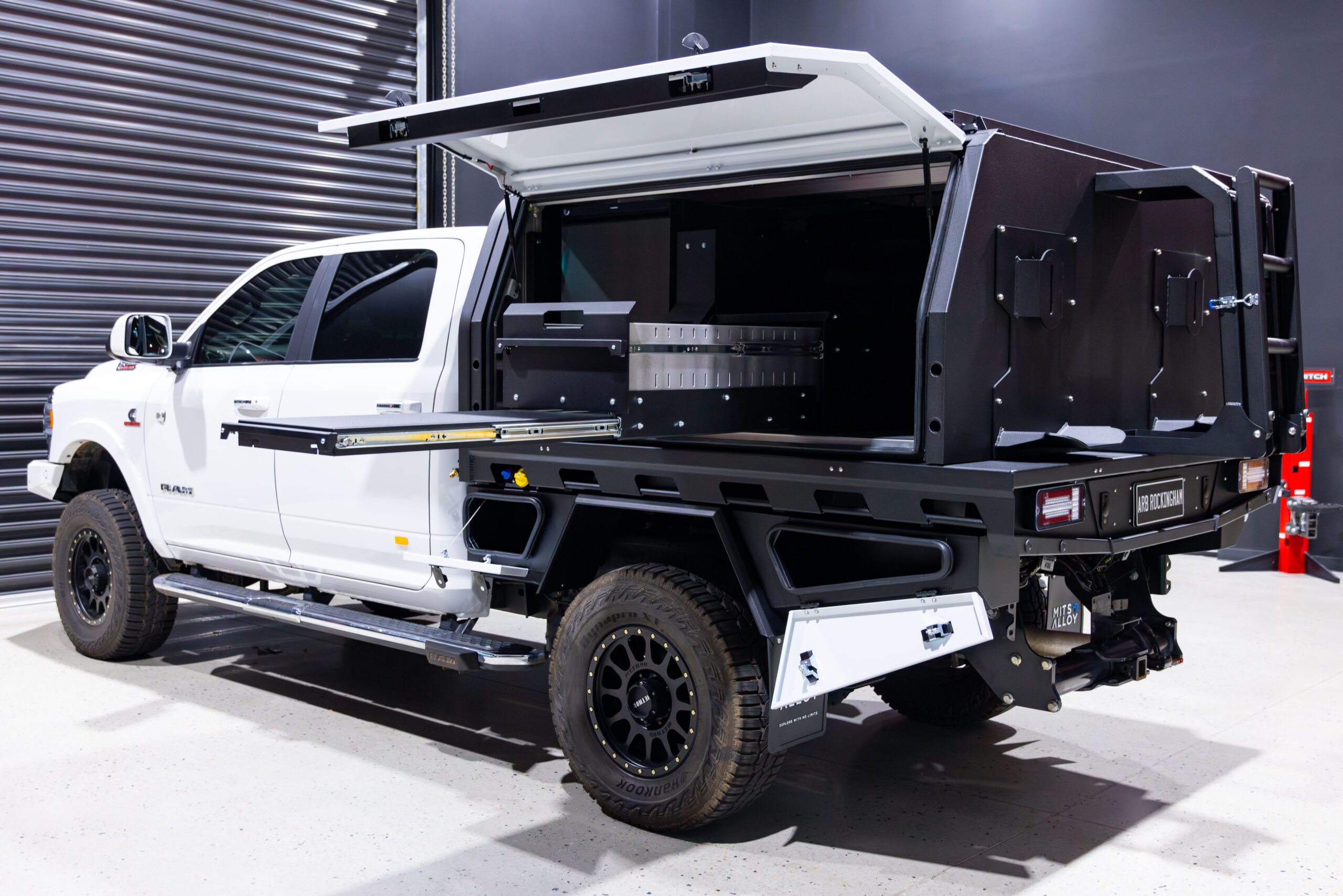 MITS Alloy Tray & Canopy Package: Tray - (7ft) 900 X 2200 X 2050 Canopy - 900 X 1935 X 2050 Colour Coded Under Tray Toolboxes 30L Headboard Water Tank Drawer & Table Side By Side Drawer System Upright Sliding Pantry 115L Upright Fridge Multirack Dual 35" Tyre Carrier 1500mm Under Tray Drawer